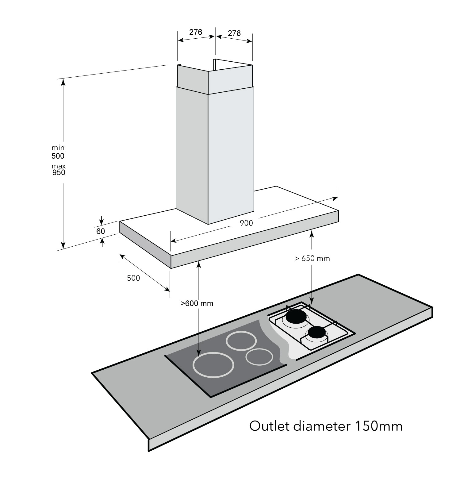 Perfectly suited for cooktops up to 90cm wide, the rangehood features concealed mesh filters and perimeter extraction that efficiently removes fumes and odors from around the cooking area. With a powerful 800m³/hr extraction rate, operation is smooth and easy through three-speed electronic touch controls - or completely contact-free with motion activation.